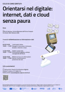 HomeNotizie ArchivioBUSSOLA DIGITALE – CICLO DI CORSI GRATUITI “ORIENTARSI NEL DIGITALE: INTERNET, DATI E CLOUD SENZA PAURA” BUSSOLA DIGITALE – CICLO DI CORSI GRATUITI “ORIENTARSI NEL DIGITALE: INTERNET, DATI E CLOUD SENZA PAURA” ⋮ Vedi azioni Stampa Invia Twitter Facebook LinkedIn Data: Febbraio 24, 2026 Per info e prenotazioni visitare il sito bussoladigitale.regione.marche.it , chiama il numero 071 8064744 o recati ad un Punto di Facilitazione Digitale AVVISO PUBBLICO PER LA SELEZIONE DELLA FIGURA DI “ADDETTO AMMINISTRATIVO – FINANZIARIO”