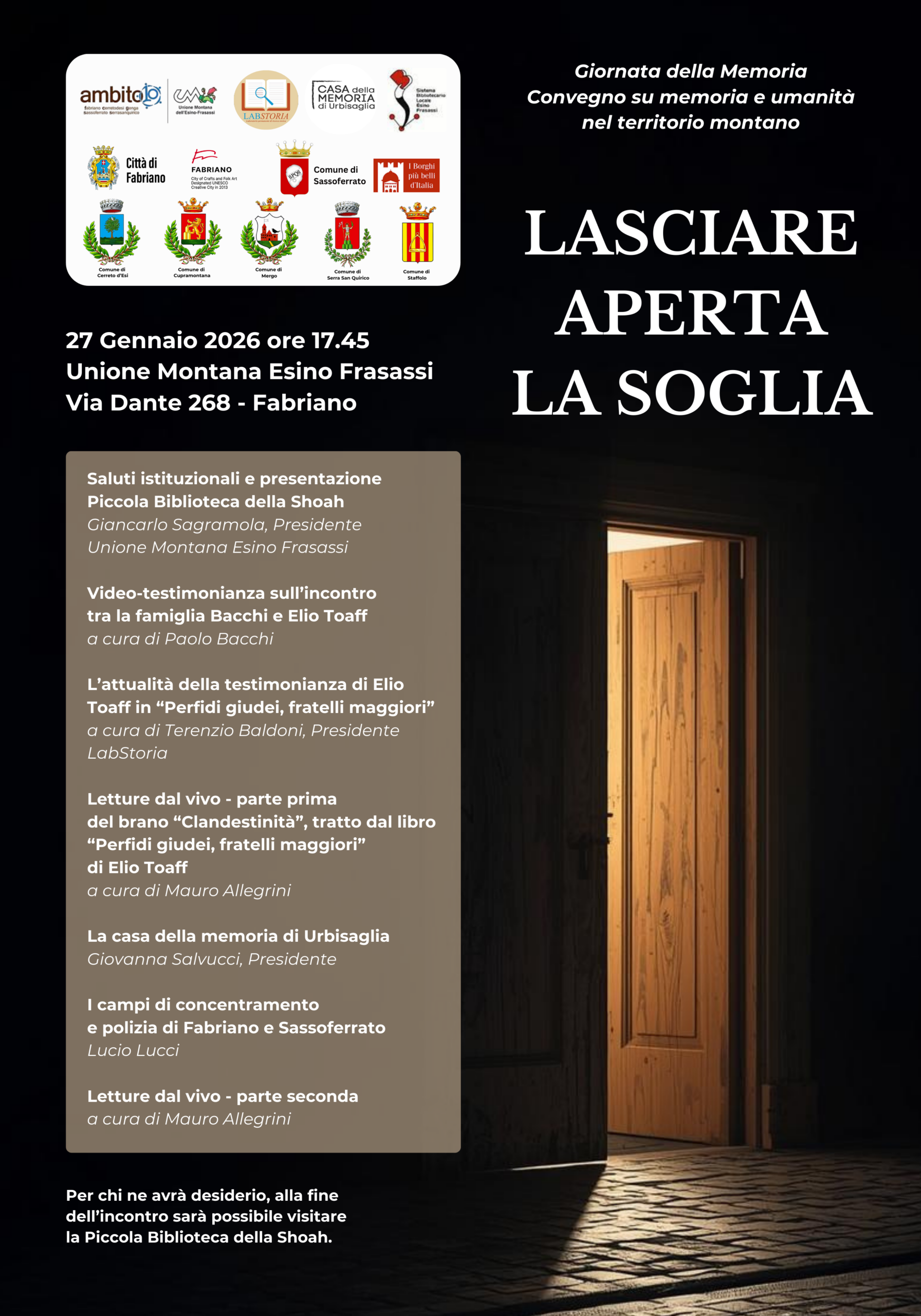 GIORNATA DELLA MEMORIA 27 GENNAIO 2026 – “LASCIARE APERTA LA SOGLIA”